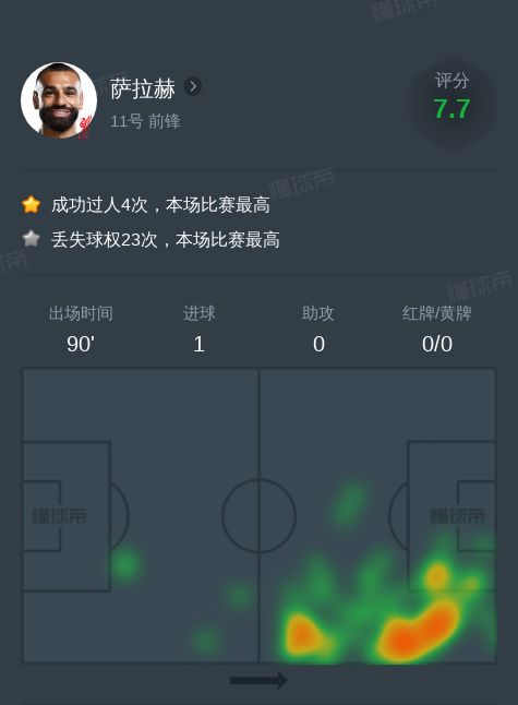 在进攻端,萨拉赫的个人能力得到了充分发挥。他不仅完成了3次传中,其中1次帮助队友得分,同时还有2次长传,1次成功完成。这些传球为球队创造了多次射门机会,为利物浦的攻击增加了威胁性。萨拉赫在场上展现出的全面实力,帮助球队在比赛中稳住局势,最终以2-0战胜对手。